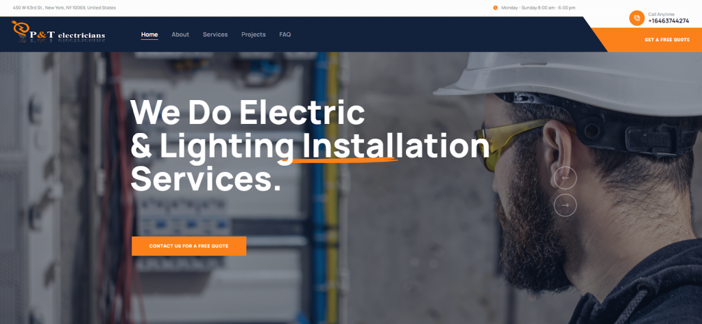 Here is an example of the website of a NY-based electrician company P&T Electricians.