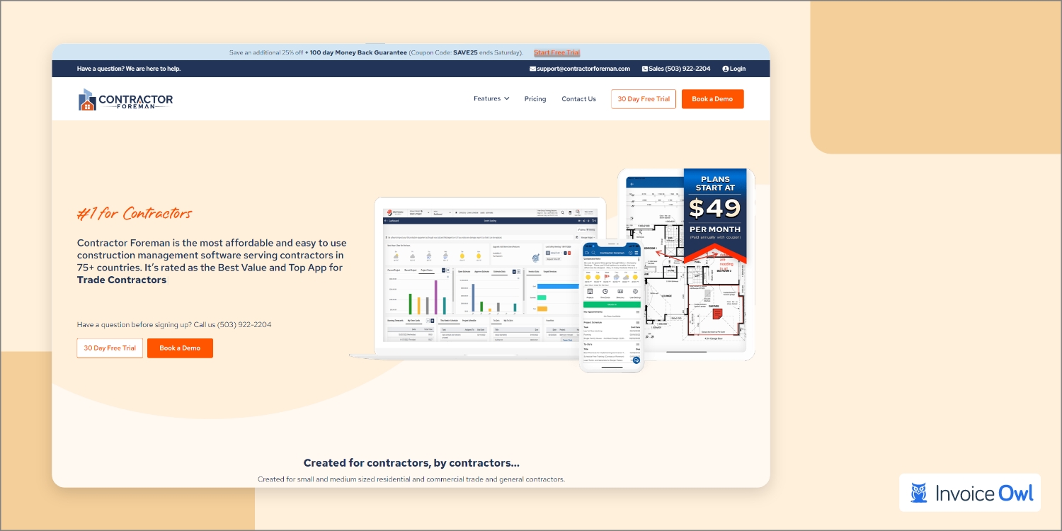 InvoiceOwl can be the ideal software for your commercial and residential projects. You can start with a free trial if this appeals to you.