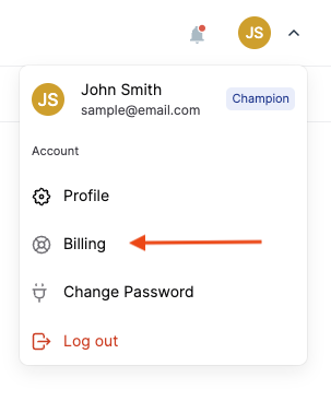 Step 4: From the dropdown menu, select the "Billing" option in your account settings.