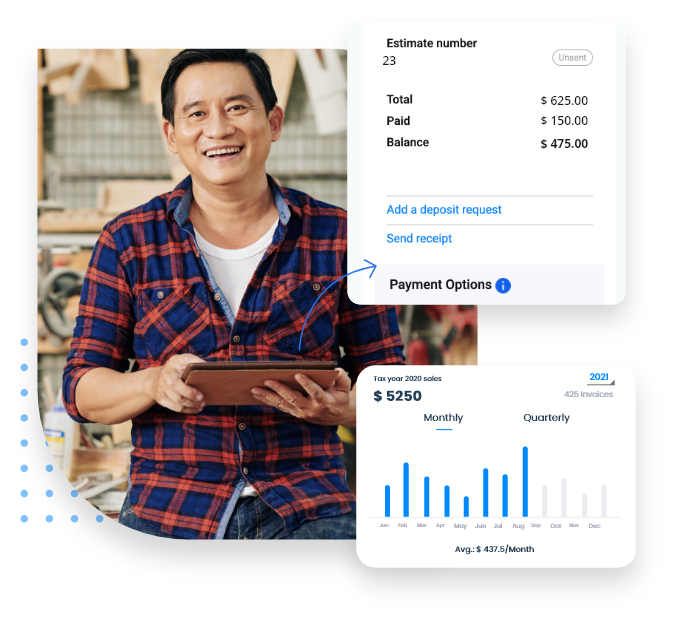 Flexible estimate templates for all odd jobs. Create estimates and invoices on the spot and get paid faster by accepting online payments.