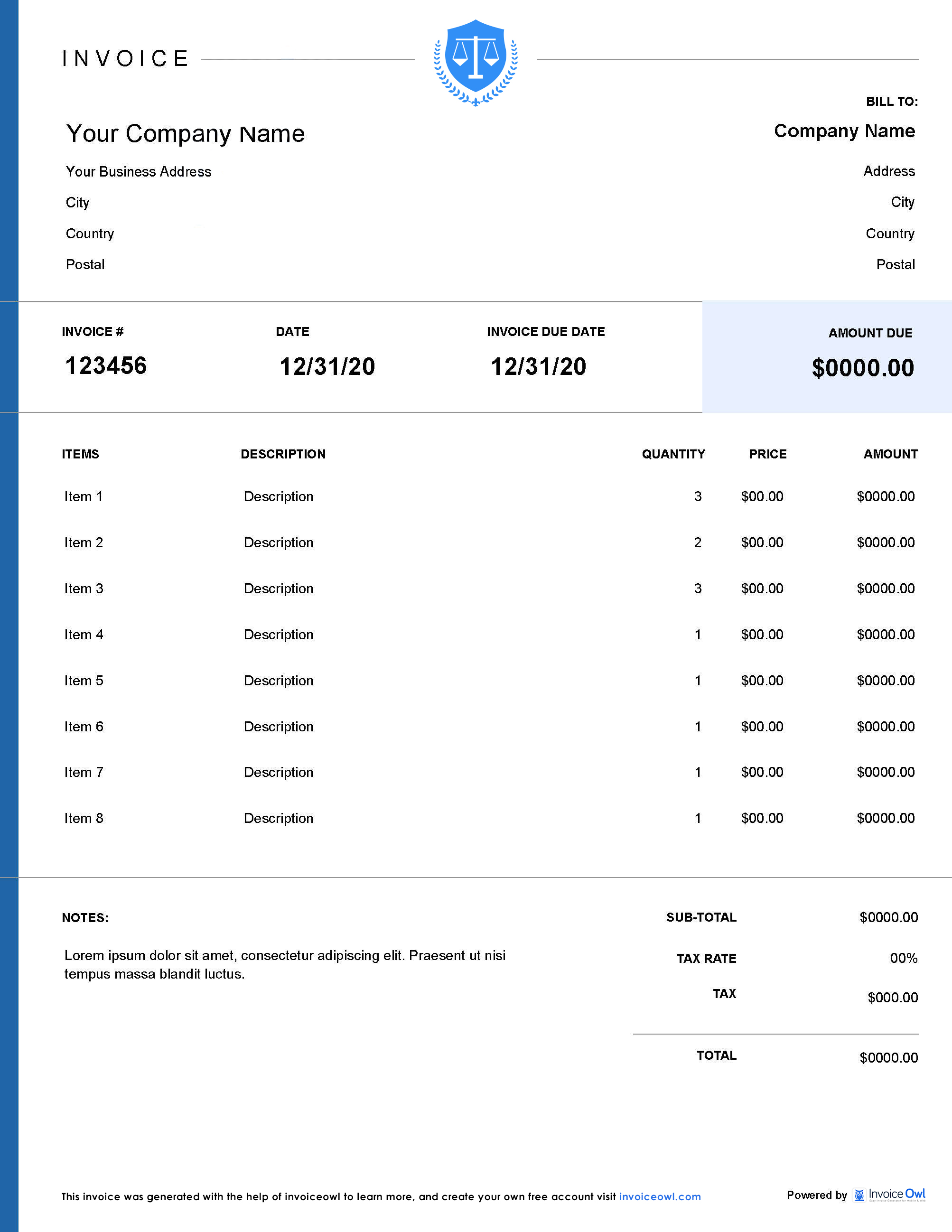 Making a legal billing invoice becomes simple with the InvoiceOwl app. All you have to do is fill in details in the fully customizable legal invoice template. And you are good to go.