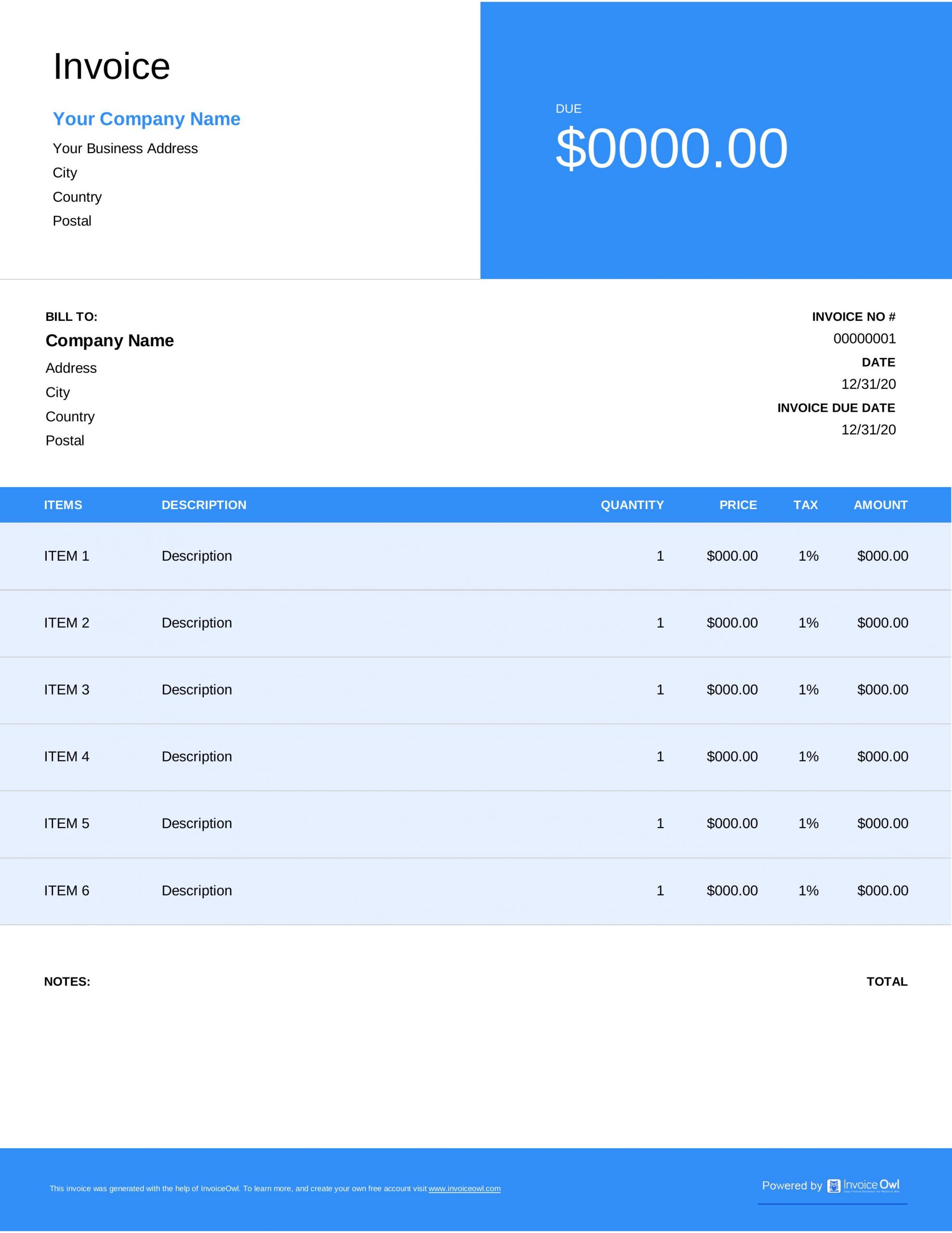 In a blank invoice template, you must add the following things to make it look professional: invoice number, invoice date, and client address; a line items section with goods/services including price, quantity, and totals; notes and payment terms and conditions; taxes and discounts; photos and attachments if any; and an e-signature before sending it to your client. All these fields are important, so do not skip any one of them. Adding all the fields will get you paid faster.