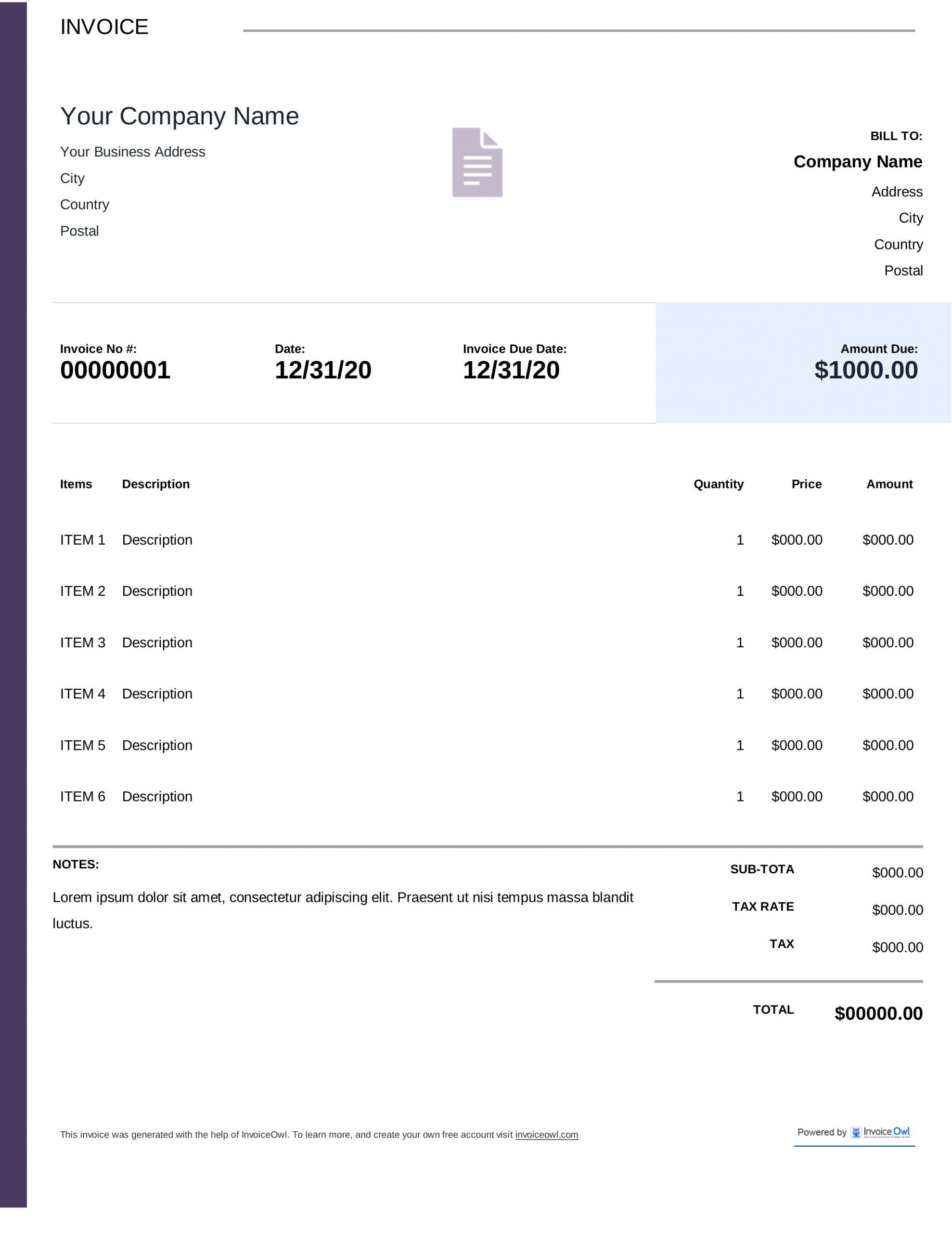 InvoiceOwl Invoicing Software vs Free Invoice Template