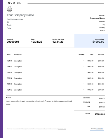 - Word invoice templates - Create personalized .doc invoices with extensive formatting options