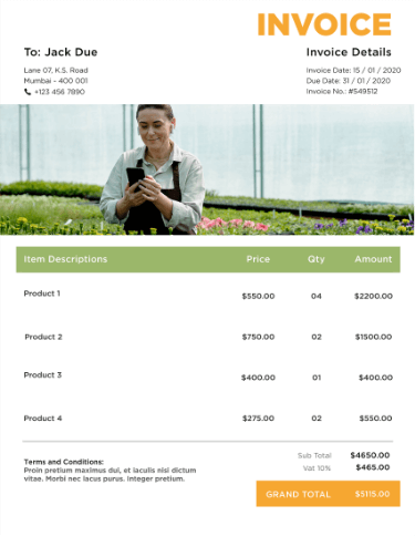 Creating an invoice for a small business using a template is effective and efficient too. Simply download the template, add customer details, mention invoice dates, assign a unique invoice ID, add all particulars, highlight accounts payable, mention the due date, and send professional invoices to your clients.
