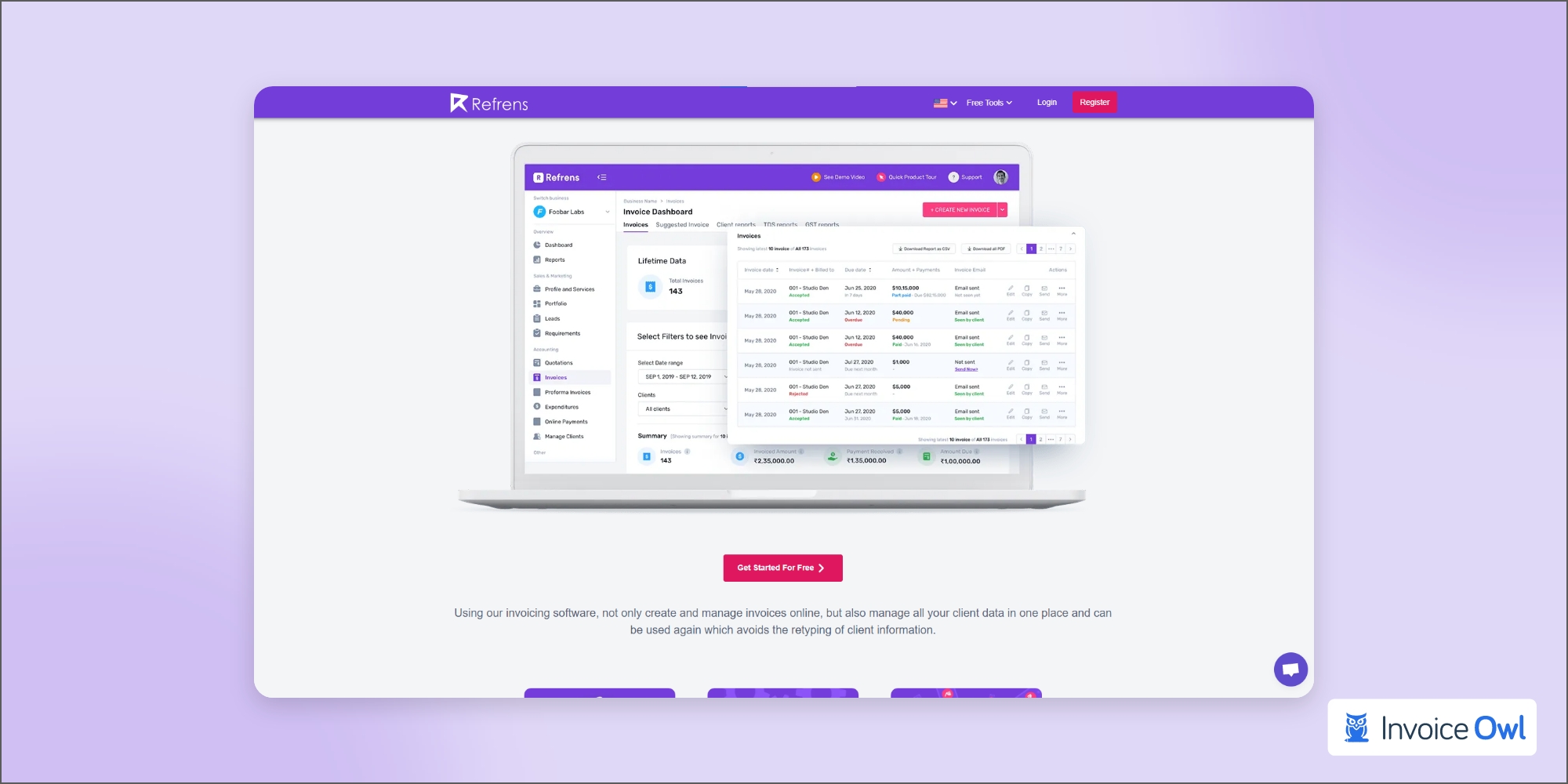 Invoices can be created for an unlimited number of clients without any payment through Refrens.