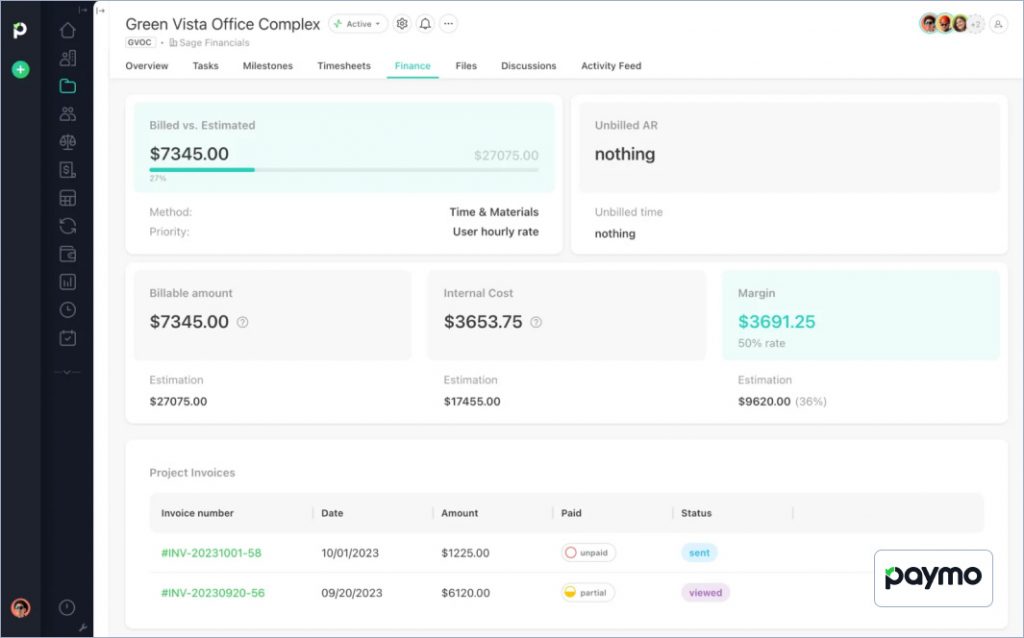 Paymo offers an integrated solution that offers time-tracking, invoicing, and project management tools under a single platform. This helps teams manage entire workflows from start to finish.