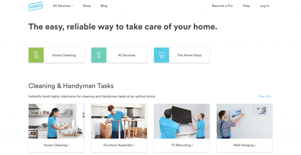 Also, Handy is the only handyman service in the United States that sells furniture, a service it offers through its subsidiary company, The Home Shop. In addition to the opportunity to purchase furniture online, Handy customers can have it assembled by one of the technicians when it arrives at their home.