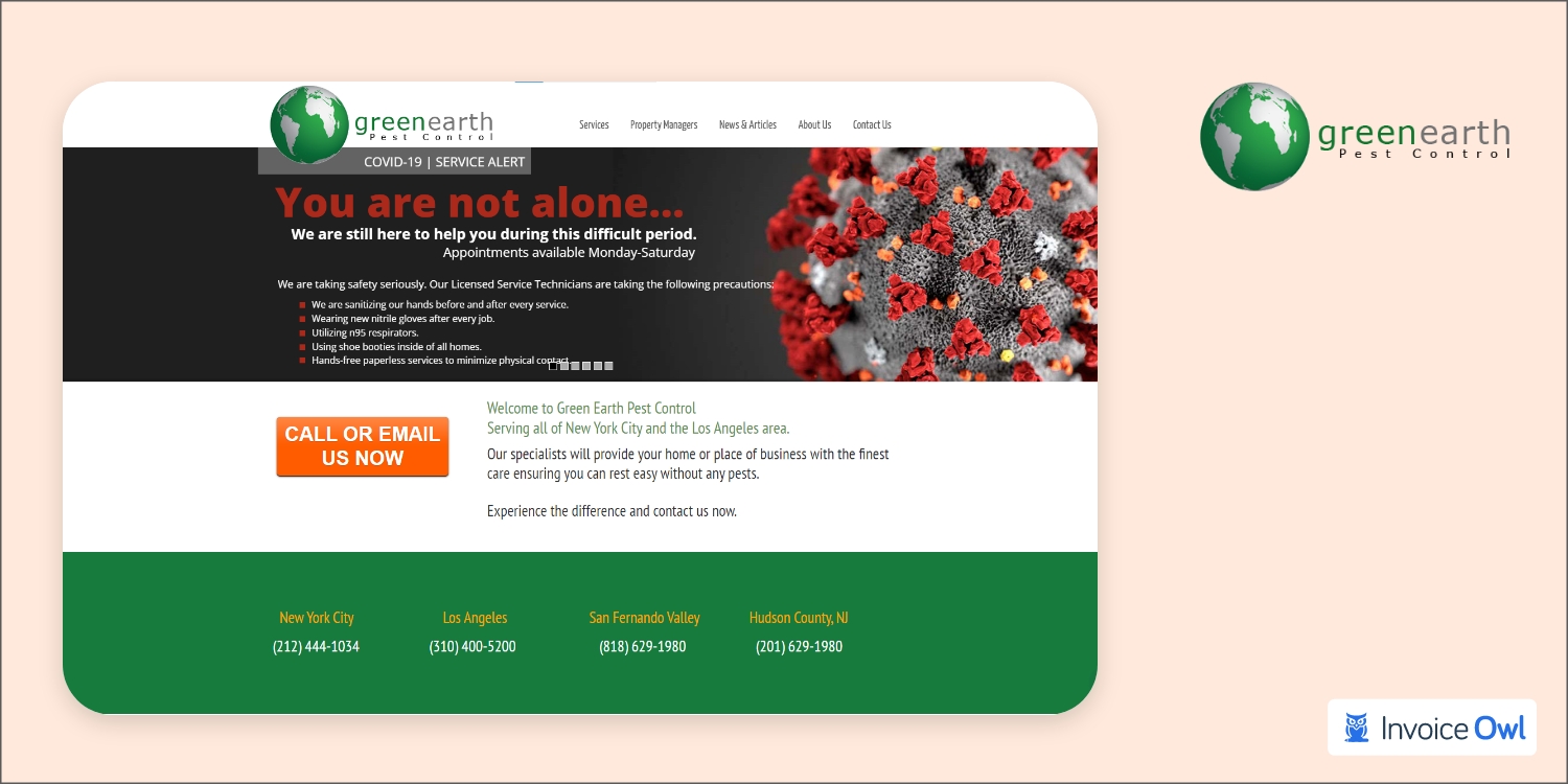 Green Earth is one of the crisp and effective pest control websites whose design is worth checking.