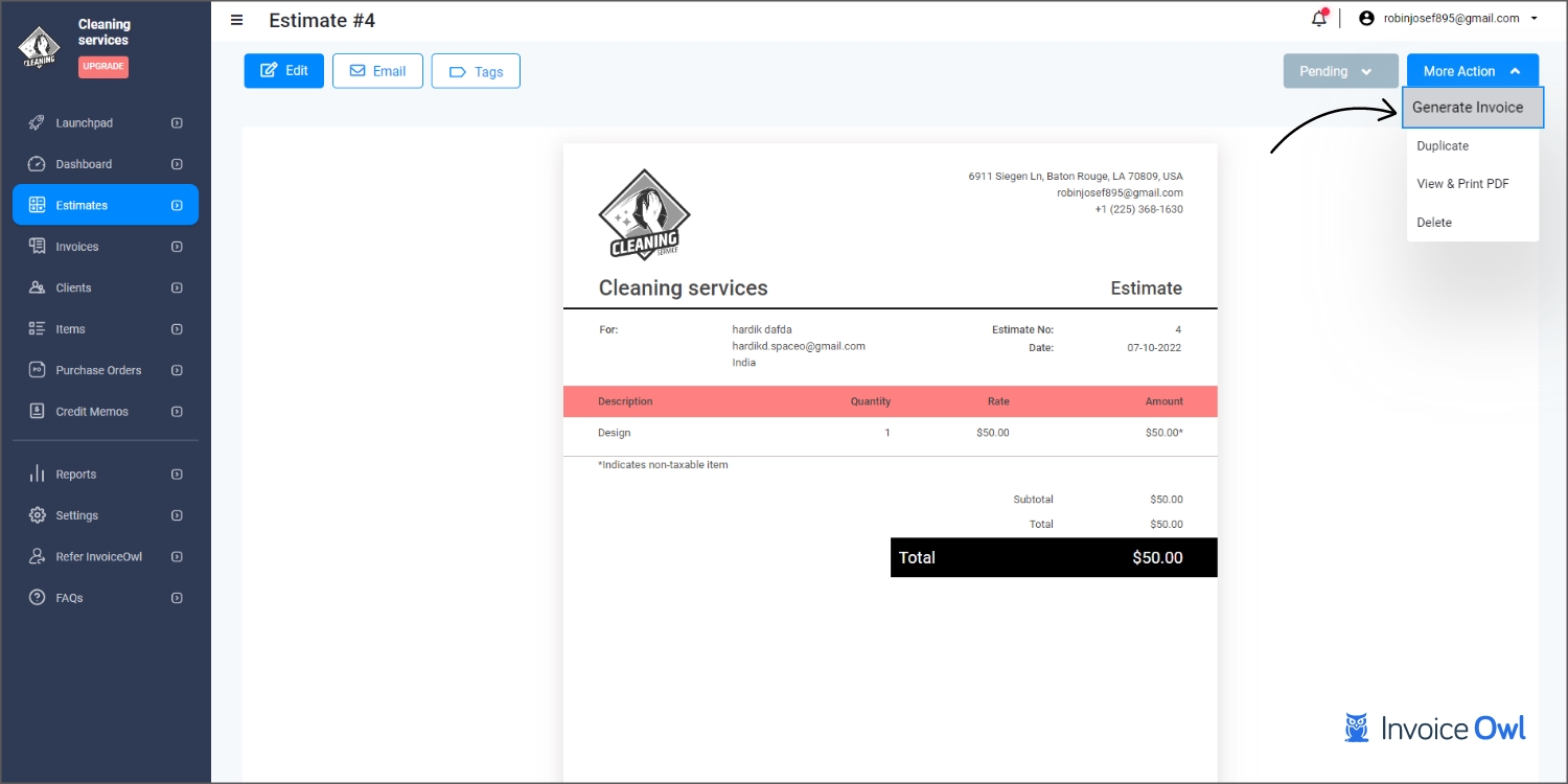 - 03InvoiceOwl allows you to convert approved estimates into invoices with a single click