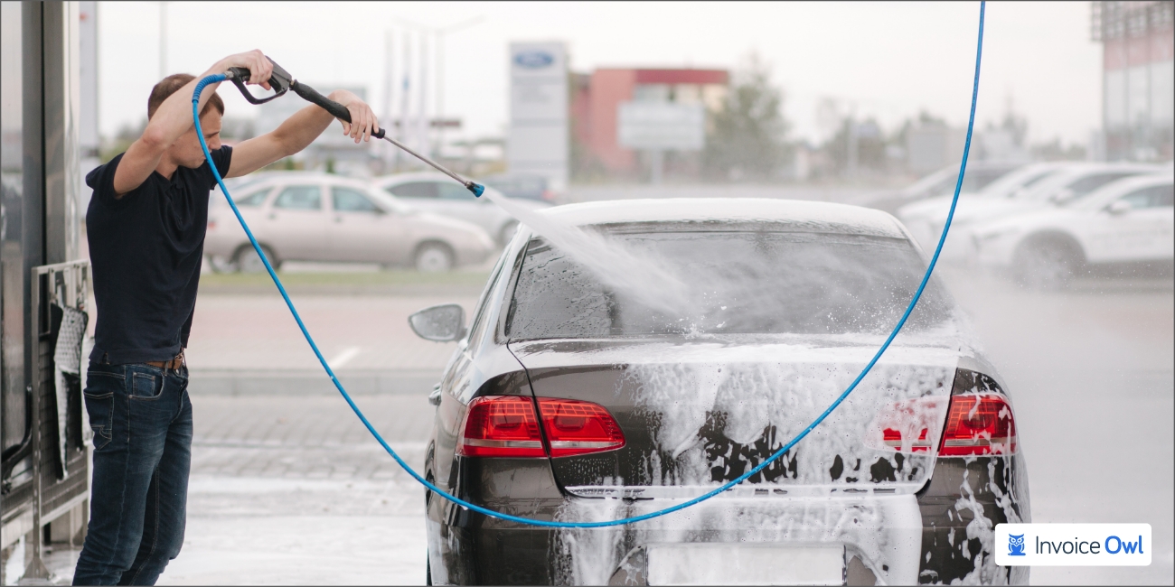 A van or vehicle to transport your equipment that has logos on the side with the name of your pressure washing business and contact information to aid in marketing. Additionally, use the right pressure washing estimating and invoicing software, like InvoiceOwl, to make your business operations easier.