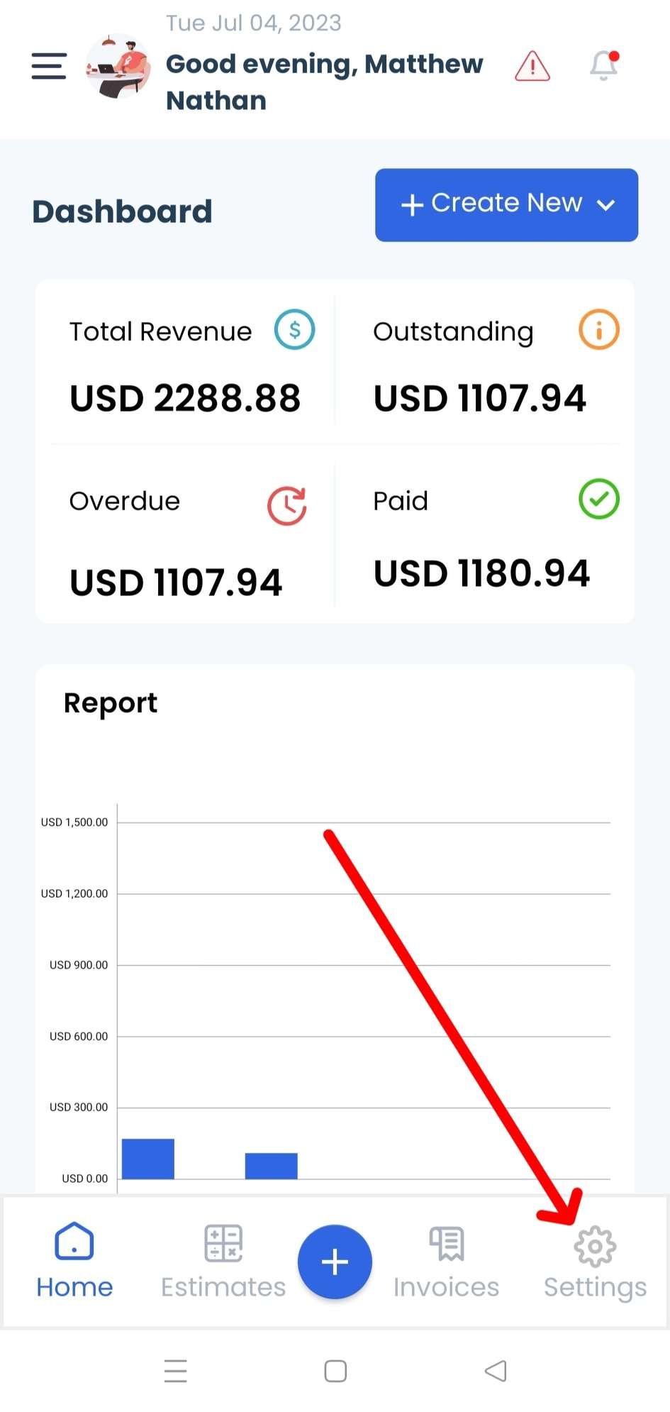 Step 1: Click on the Settings tab at the bottom of the home screen.