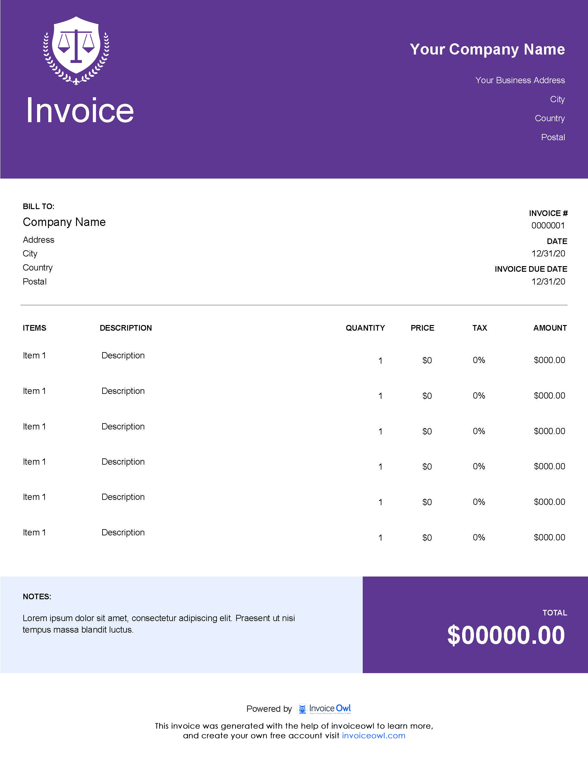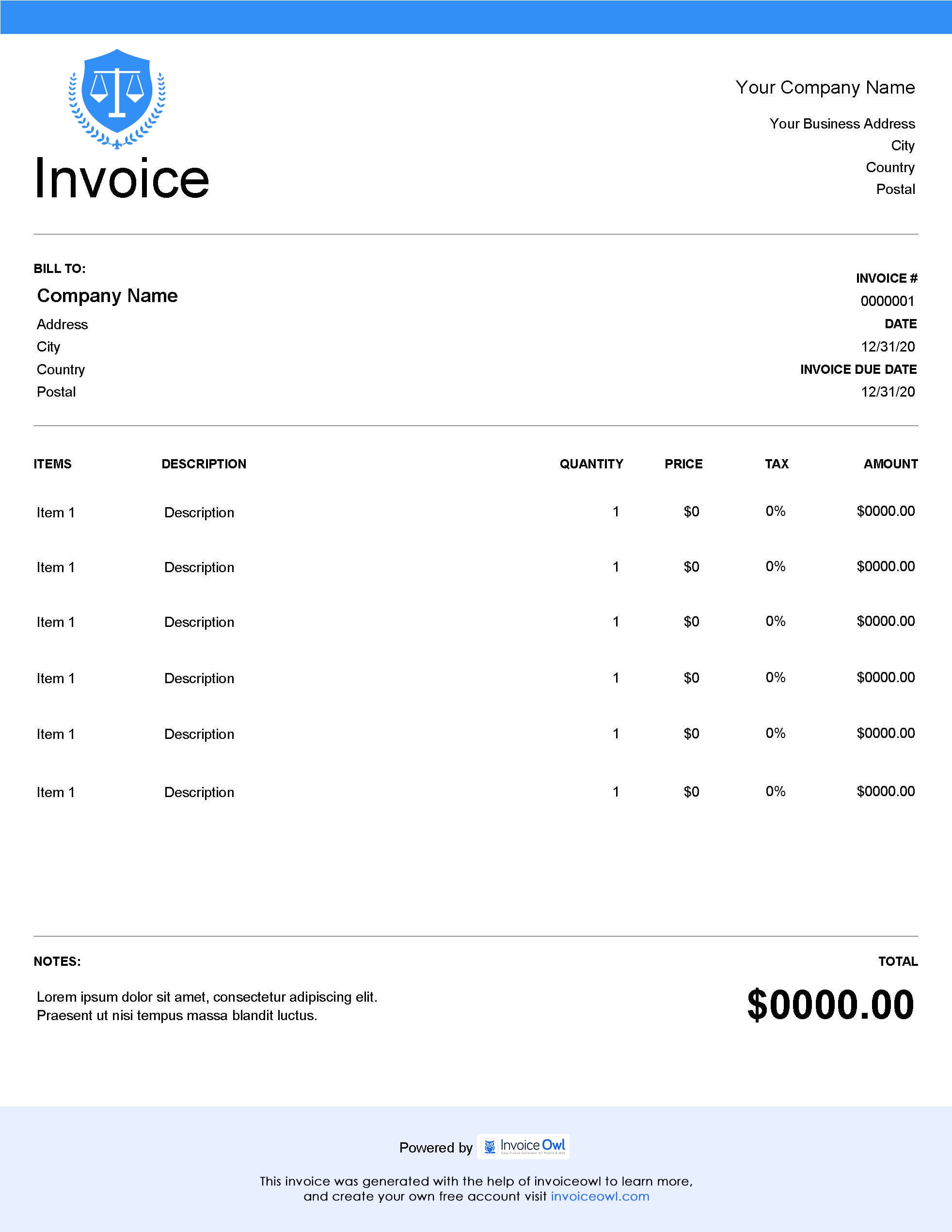 Making a legal billing invoice becomes simple with the InvoiceOwl app. All you have to do is fill in details in the fully customizable legal invoice template. And you are good to go.