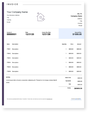 Start with a customized house cleaning invoice template - either printable or digital. Our templates comply with U.S. accounting standards and include common American payment methods like credit cards, ACH transfers, and checks.