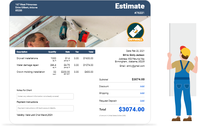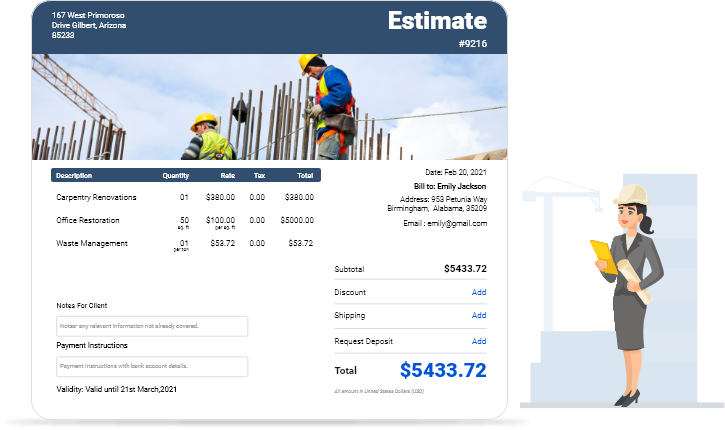 Create an estimate & invoices in minutes with the construction estimate & invoicing software for commercial, and residential construction companies.