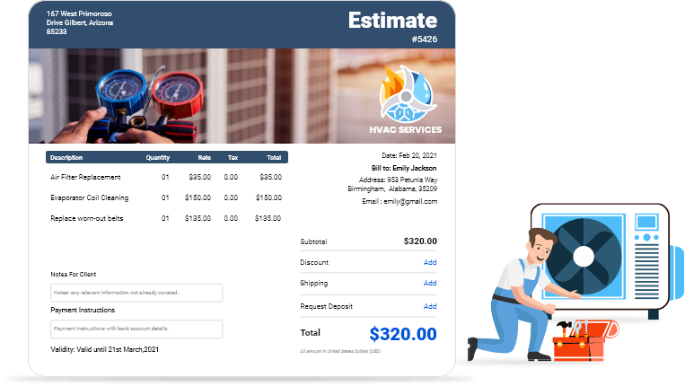 InvoiceOwl's HVAC estimate and invoicing software helps contractors send estimates, purchase orders, and track paid & unpaid invoices in one place. Try free!