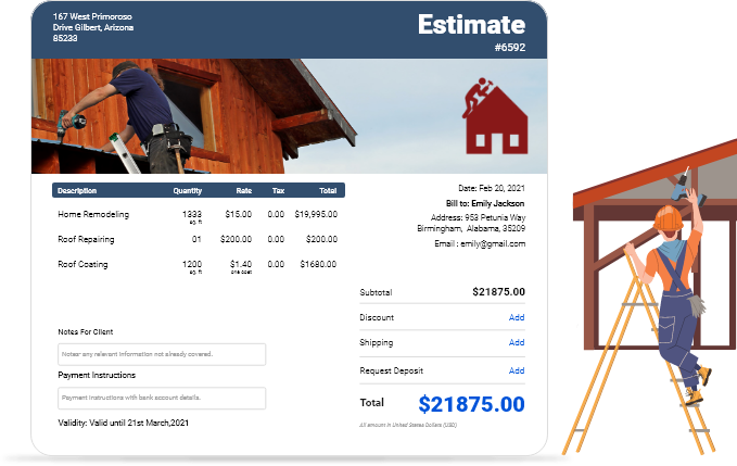 InvoiceOwl is customizable estimate and invoicing software for roofing contractors. Keep all your estimates and invoices for roofing projects in one place.