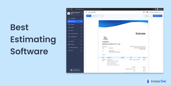 InvoiceOwl's top plumbing estimate and invoicing software. Send custom estimates, invoices, track expenses, and credit memos. Try a free 14-day trial.